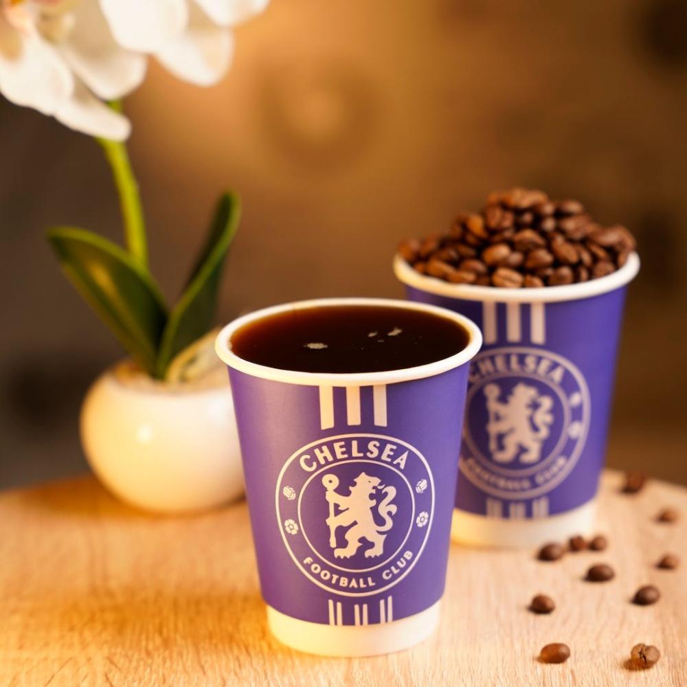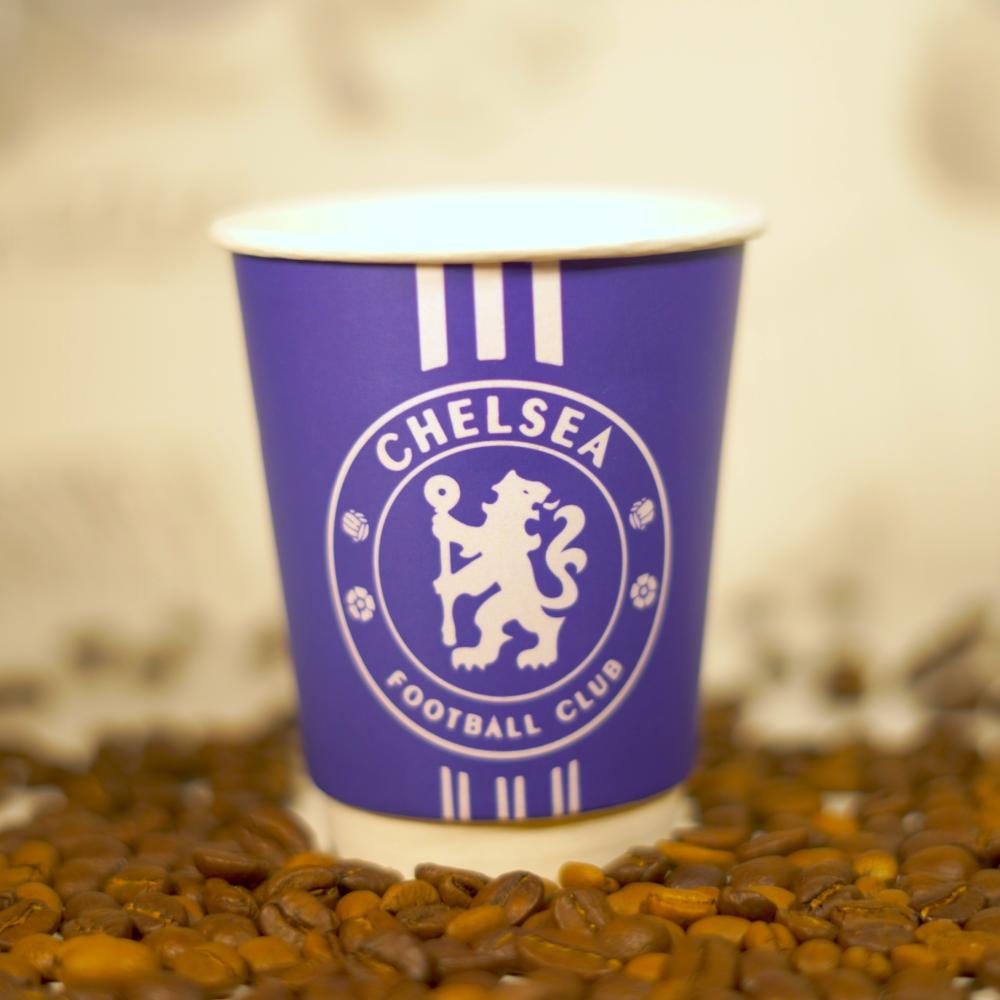 اكواب ورقية مزدوجة (دبل) بجودة عالية بحجم (8oz) 250 مل بشعار الزرق نادي تشيلسي الإنجليزي